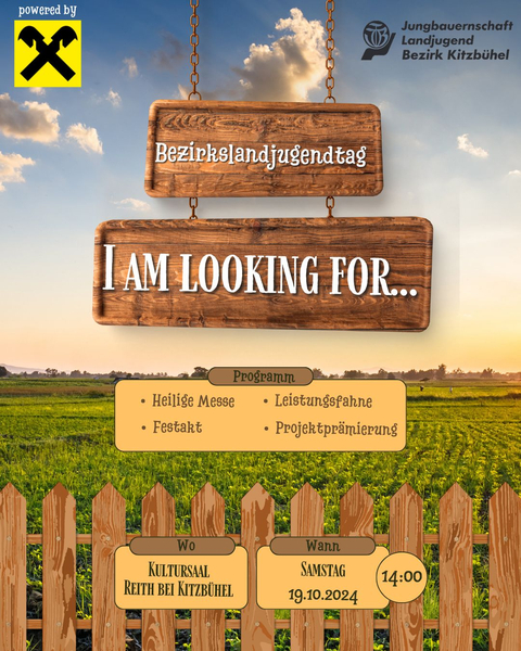 Der diesjährige Landjugendtag der JBLJ Bezirk Kitzbühel findet am 19.10.2024 im Kultursaal in Reith unter dem Motto "I am Looking for" statt. Wir freuen uns über zahlreiche Besucher.