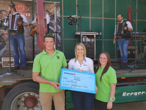 Im Zuge ihres traditionellen Maifestes überreichten die Obleute der JB/LJ Weer, Marco Waidacher und Viktoria Klingenschmid, Landesleiterin-Stellvertreterin Barbara Peer einen Scheck in Höhe von 500,- Euro für den Sozialfonds der TJB/LJ.