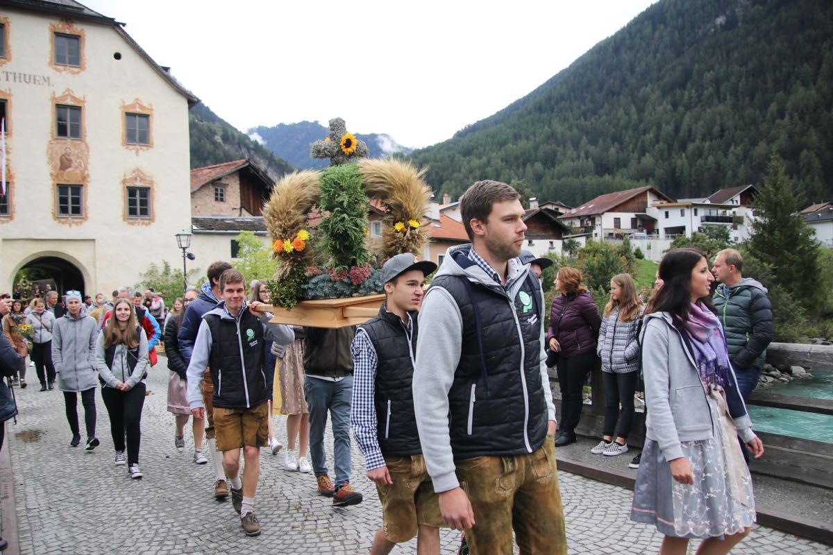 Die Jungbauernschaft/Landjugend des Bezirkes Landeck und die Mitglieder der 36 Ortsgruppen präsentierten dabei stolz mit und kreativ gestalteten Festwagen und wunderbaren Erntedankkronen die Ernte des Sommers.Gestartet wurde der Festtag traditionell mit einer Feldmesse in der Mure bei Pfunds, bei der Gedanken zur Landwirtschaft und zum Danken Platz fanden. Zelebriert wurde die hl. Messe von Dekan Franz Hinterholzer, welcher in seiner Predigt vor allem auf die Mithilfe Gottes bei einer erfolgreichen Ernte einging.„Berge kommen nicht zusammen aber Menschen – deshalb sind wir unheimlich stolz, wenn wir heute vor so zahlreichen Festbesuchern sprechen dürfen. Wir möchten uns am heutigen Tag vor allem bei all unseren Ortsgruppen bedanken, welche in den letzten Tagen und Wochen großen Einsatz gezeigt haben, damit sie am heutigen Tag ihre wunderschön gestalteten Erntedankkronen und Festwägen präsentieren können", so die Bezirksobleute der Jungbauernschaft/Landjugend Bezirk Landeck Stefanie Siehs und Gabriel Juen.Den Einsatz der Jungbauernschaft/Landjugend im Bezirk Landeck würdigten unter anderem LH Günther Platter, Bauernbunddirektor BR Peter Raggl, LK-Direktor Ferdinand Grüner, Bezirksbauernbundobmann Elmar Monz sowie der Bürgermeister von Pfunds, Rupert Schuchter.