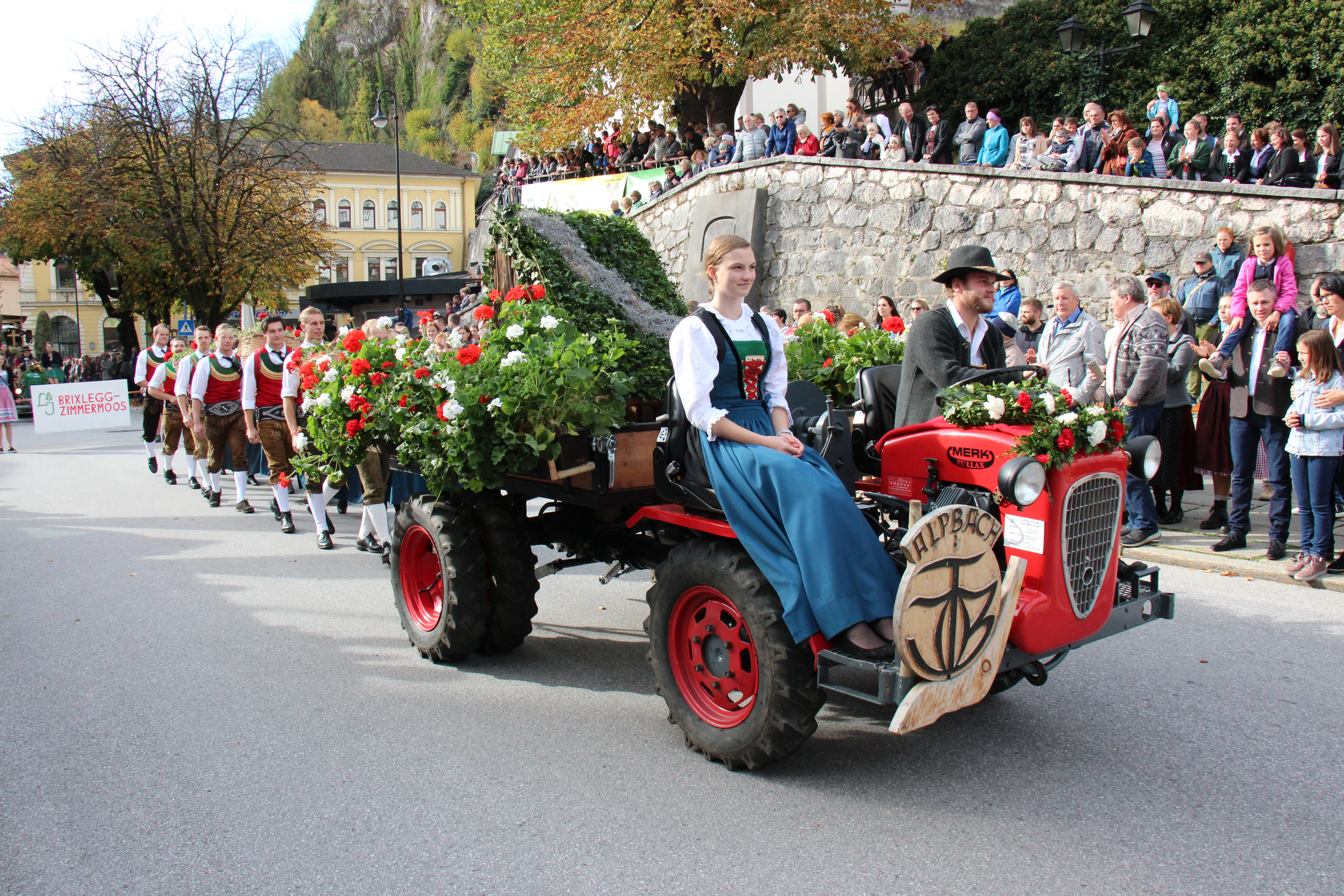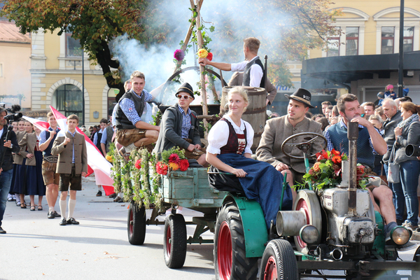 Ein Höhepunkt des Festtages war der große Bezirkserntedankumzug durch die Kufsteiner Innenstadt. 32 Ortsgruppen präsentierten auf sehr kreative Art und Weise verschiedenste Themen rund um die heimische Landwirtschaft und die Heimatgemeinden. Von prächtigen Erntedankkronen und geschmückten Festwägen über Themenwägen zu den vier Jahreszeiten, Feuerbrennen, Almwirtschaft und vielem mehr bot sich den zahlreichen Zuschauerinnen und Zuschauern ein beeindruckendes Bild. Begleitet wurde der Festumzug von sieben Gastmusikkapellen. Insgesamt waren mehr als 800 Mitwirkende involviert. „Es ist einfach gewaltig, welche Ideen die Ortsgruppen zu den Themen haben. Und auch in der Umsetzung wurden keine Mühen gescheut. Wir können uns bei unseren Ortsgruppen und bei unseren Helfern nur auf das herzlichste für ihren großen Einsatz bedanken. Nur sie haben es ermöglicht, dass dieser Tag so wunderbar geworden ist", so die Bezirksobleute Bettina Mayr und Andreas Kronbichler. Seinen Abschluss fand der Tag dann am Hödnerhof in Ebbs beim „Stadt-Land-Fest", wo die Besucher mit heimischen Köstlichkeiten von den Kufsteiner Bäuerinnen und musikalischen Klängen von „JUHE aus Tirol" verwöhnt wurden.