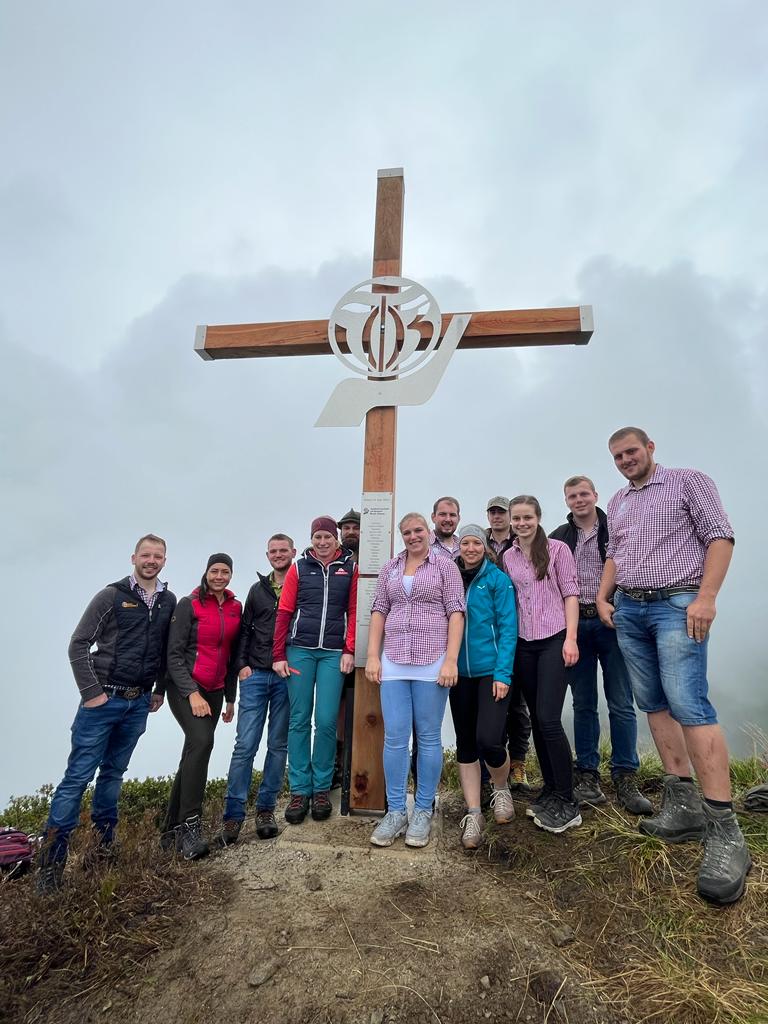 Die Bezirksausschussmitglieder haben bei ihrem diesjährigen Bezirksprojekt ihr handwerkliches Geschick bei der Anfertigung sowie beim Aufstellen des Gipfelkreuzes gezeigt. Dabei konnten durch Heli Austria Flight Academy, welche die Materialien auf den Berg flogen, einige mühsame Aufstiege erspart werden.