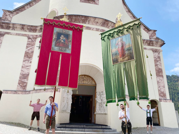 Die Burschen der JB/LJ Nauders tragen mit Begeisterung die Fahnen.