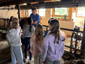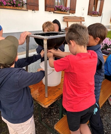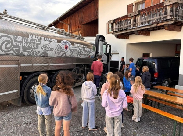 Das Projekt fand an einem Vormittag statt an dem die SchülerInnen gemeinsam mit ihren Lehrpersonen an den Hof kamen. Aufgeteilt in zwei Gruppen wurde der Stall besichtigt, ein Melkvorgang durchgegangen, eine Futtermittelanalyse durchgeführt, die Verdauung und das Futter der Kuh besprochen und an einer Eutersimulation melken probiert. Auch der Milchtank aus Sterzing kam vorbei – die Kinder konnten beim Abpumpen der Milch zuschauen und bekamen jede/r ein Joghurt direkt aus Sterzing! Es waren Kinder sowie Lehrpersonen sehr interessiert und viele offene Fragen konnten geklärt werden. Es war deutliches Interesse merkbar, was für uns Ansporn ist, das Projekt zu wiederholen.