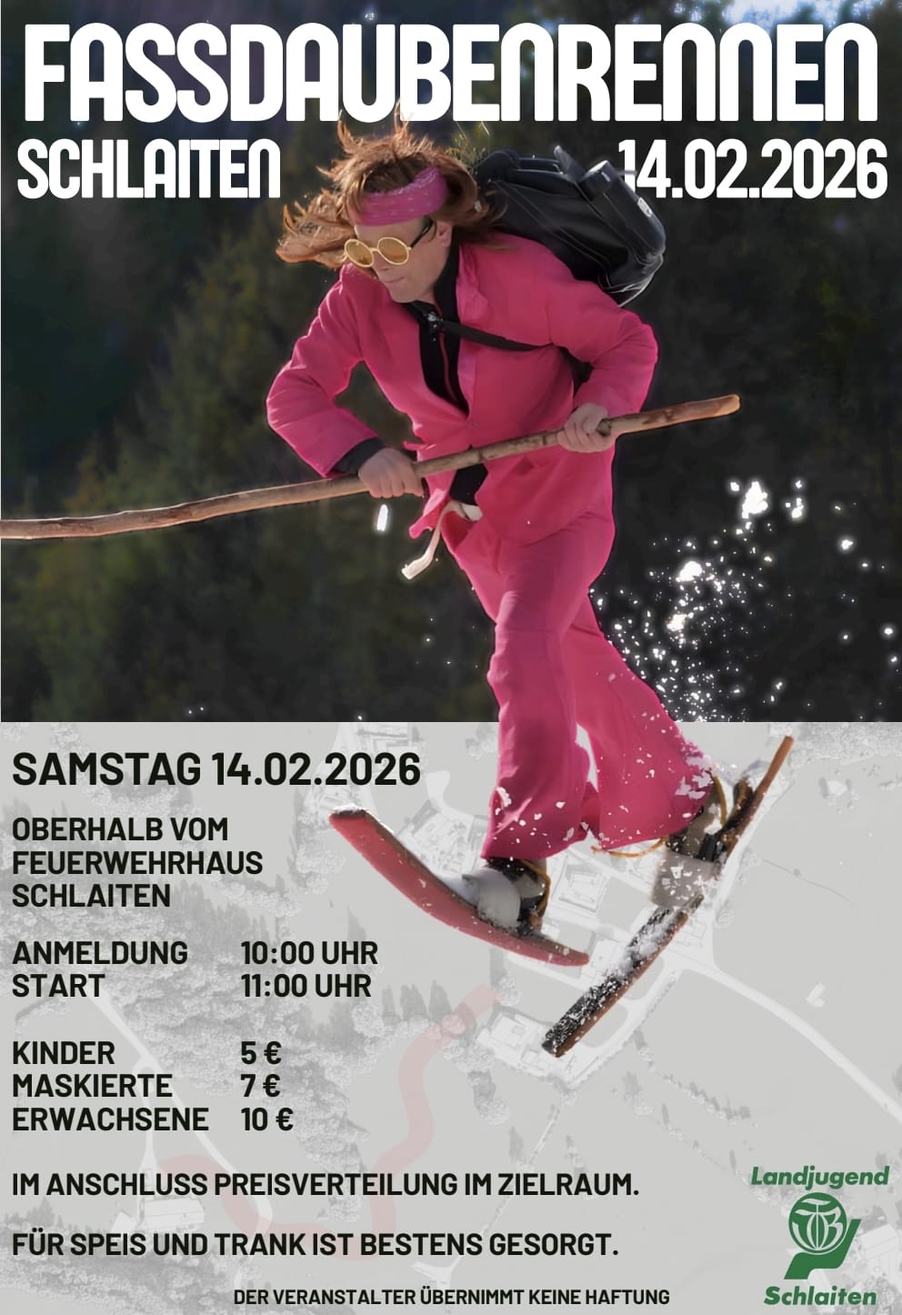 Am Samstag den 14.02.2026 findet in Schlaiten wieder das Fassdaubenrenenn statt.